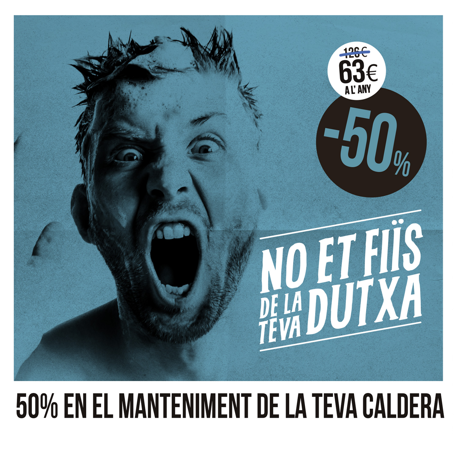 Promoció vàlida del 2 d’abril al 14 d’abril de 2024. *Preu oferta vàlid pel primer any, segon any preu habitual (126€ manteniment caldera). Promoció no acumulable a altres ofertes, promocions o descomptes ni vàlida per a aquells usuaris que durant els últims dos anys s’hagin beneficiat d’alguna oferta, promoció o descompte.